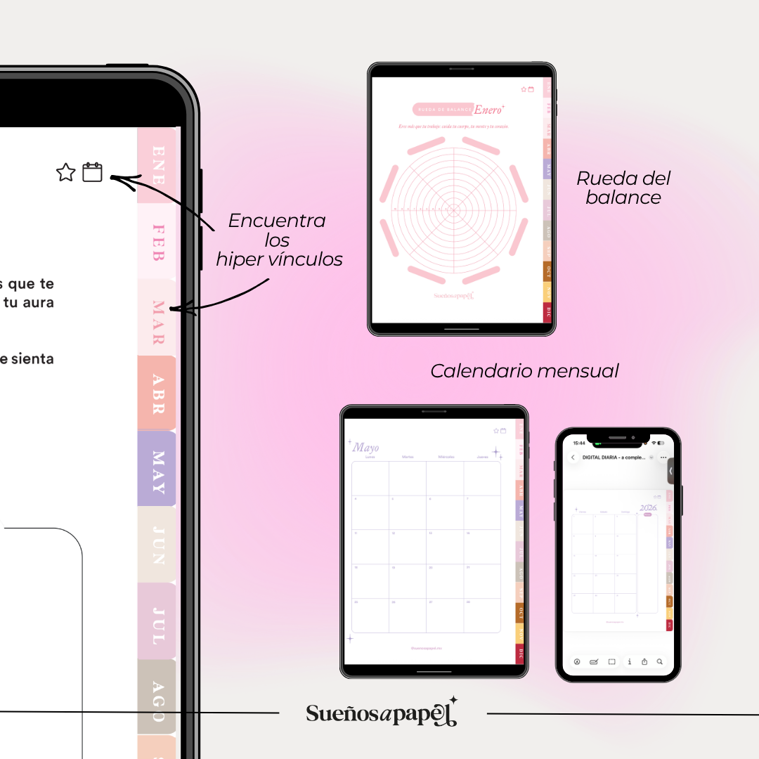 ¡Tu agenda favorita en físico ahora en formato digital! Diseñada para que puedas llevar tu planificación en tu iPad dondequiera que estés.
