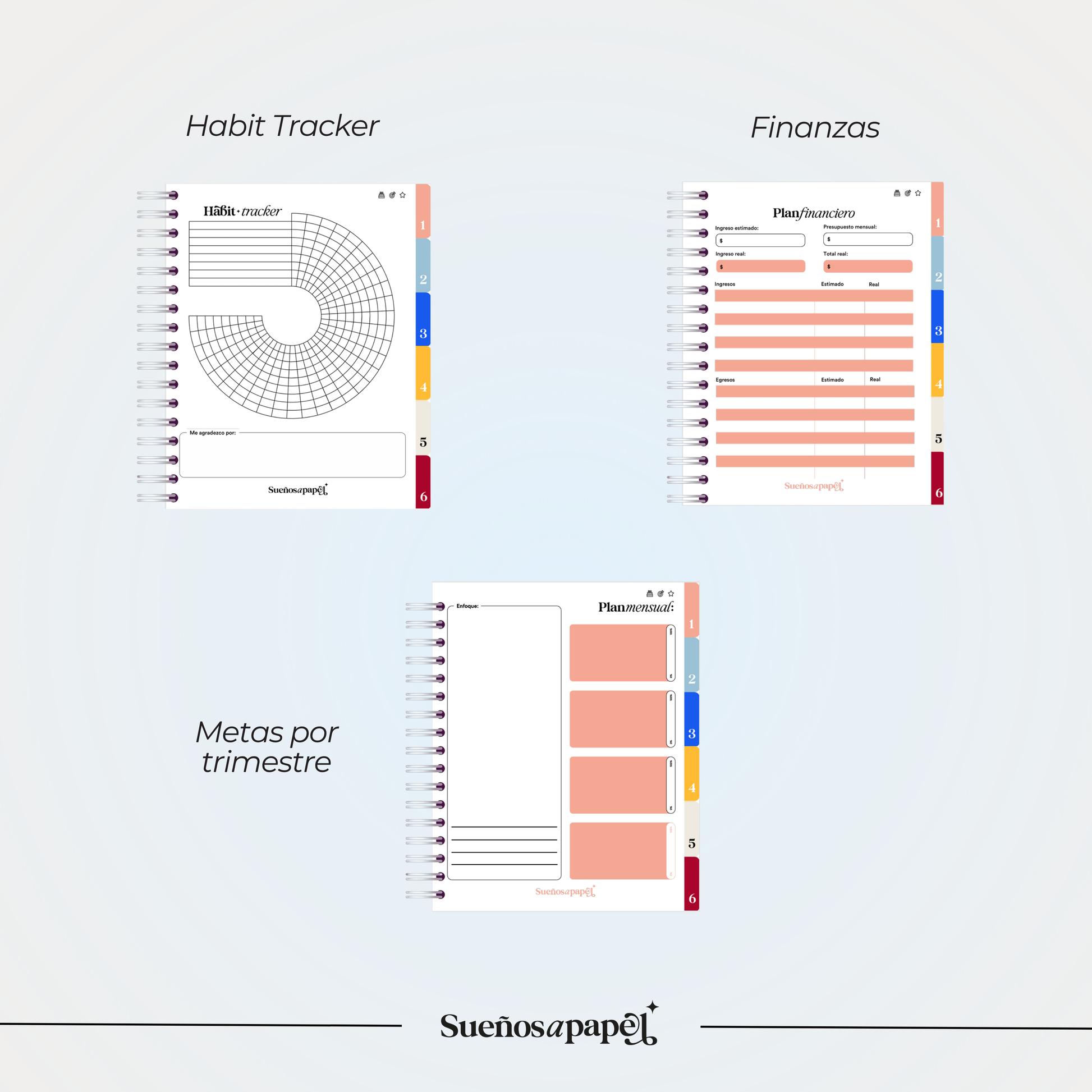 - Herramientas de Productividad: Incluye visión anual, tablero de visión, ruedas del balance mensual, y plan financiero personalizable.