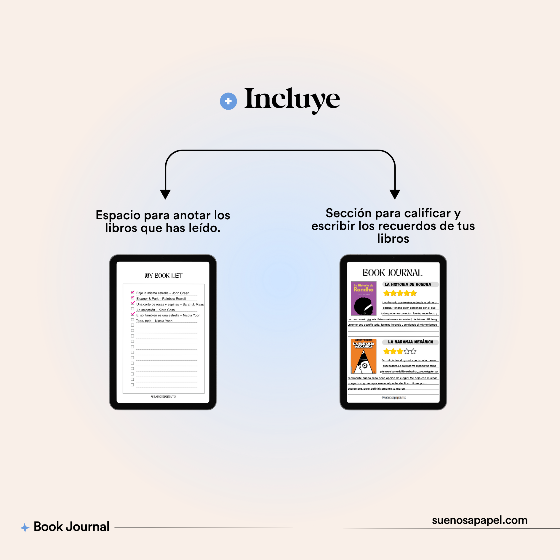 Este Book Journal es tu refugio personal, tu diario de opiniones, un rincón para explorar y crecer a través de la lectura. Perfecto para quienes aman sumergirse en historias y reflexionar sobre ellas.